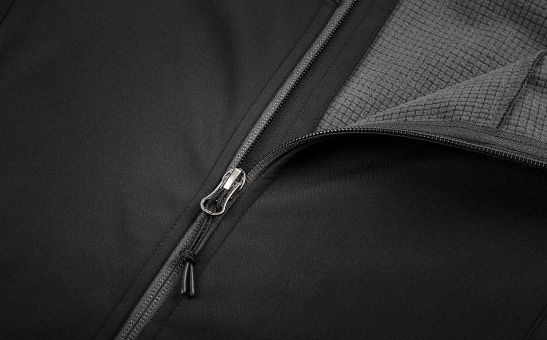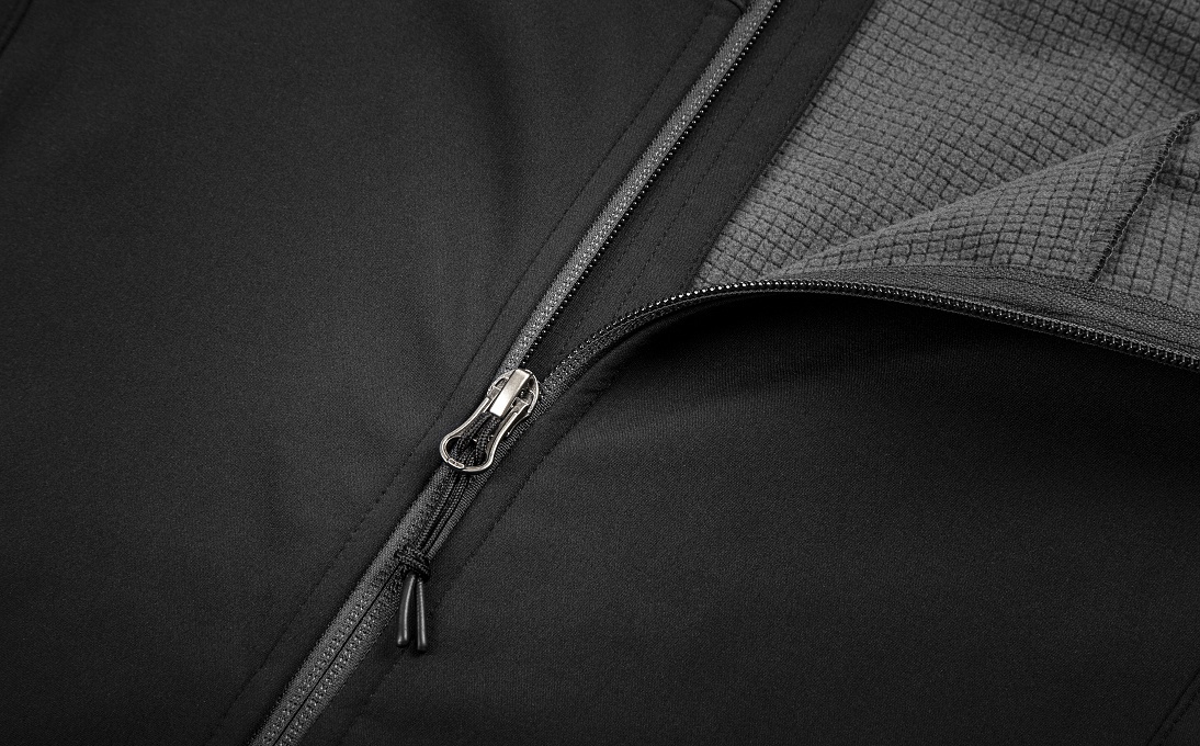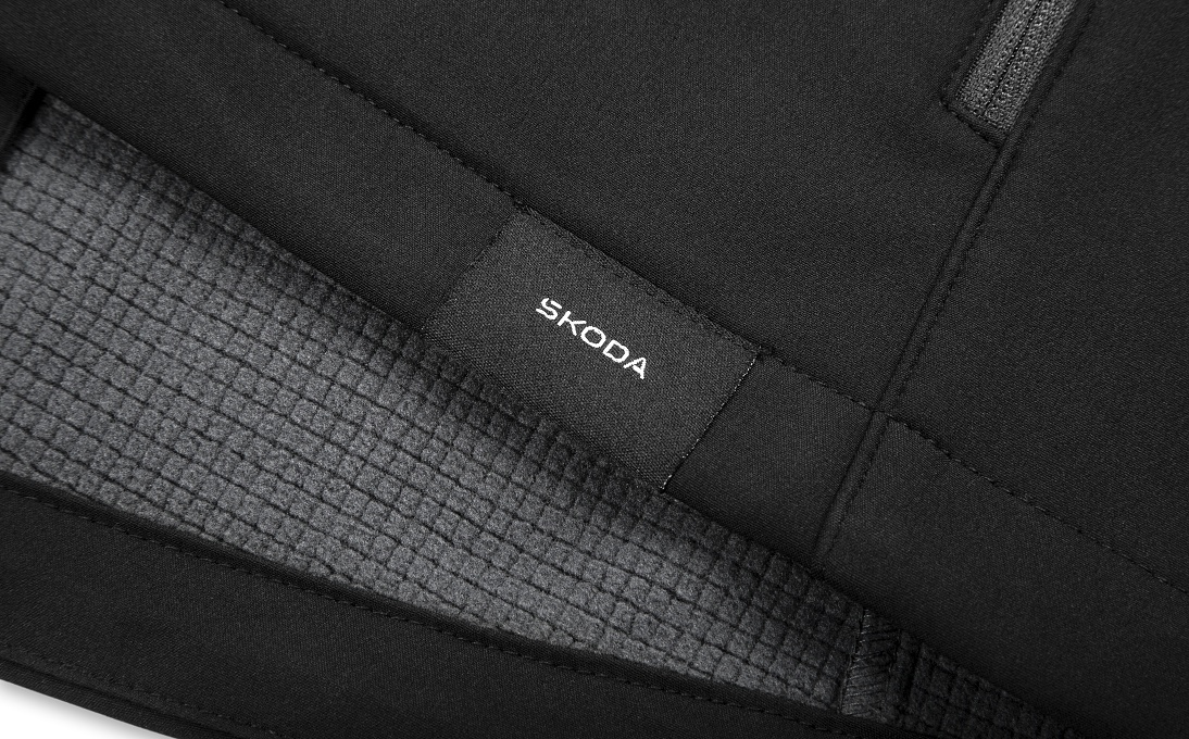 Antracitová barva, značkové zipy YKK, tkaný label Škoda a nášivka Let’s Explore dodávají bundě moderní outdoorový vzhled.