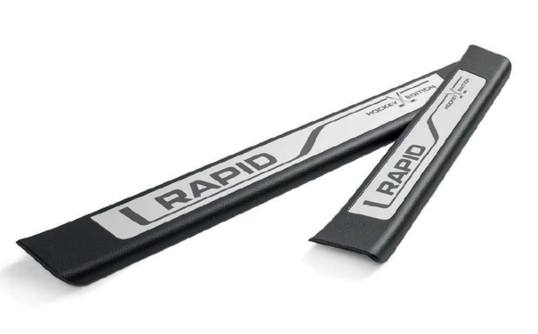 Dekorativní prahové lišty s vložkou z ušlechtilé oceli „Hockey Edition“ představují nejen praktické řešení ochrany prahů dveří, ale navíc propůjčují vozu vytříbenější vzhled. Chrání lak karoserie v místech u prahů předních a zadních dveří před nečistotami a mechanickým poškozením od podrážek bot nastupujících a vystupujících osob. Prahové lišty v kombinaci odolného plastového ABS materiálu a vložky z ušlechtilé oceli v provedení „Hockey Edition“ jsou v nabídce ŠKODA Originální příslušenství připraveny nejen pro všechny obdivovatele tohoto oblíbeného sportu, ale i pro ostatní řidiče, kteří chtějí interiéru svého vozu dodat sportovnější styl. Lišty dokonale kopírují tvar prahů dveří, na něž se ustavují pomocí šablon. K prahům dveří jsou lišty uchyceny pomocí samolepicích pásek umístěných na jejich spodní straně. V případě potřeby lze prahové lišty snadno vyčistit navlhčenou