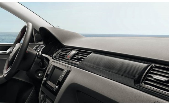 Každému, kdo chce interiéru svého vozu dodat jedinečnost a nezaměnitelný sportovně-elegantní styl, je určen interiérový PAD - Carbon Optik z nabídky ŠKODA Originální příslušenství. Díky tomuto PADu umístěném na přístrojové desce dostane interiér vozu pečeť individuality a originality. Interiérový PAD je vyroben z pružného plastu. Montáž se provádí jednoduchou výměnou za stávající PAD přístrojové desky. Pro dokonalý vzhled interiéru vozu doporučujeme interiérový PAD - Carbon Optik doplnit prvky malého koženého paketu.