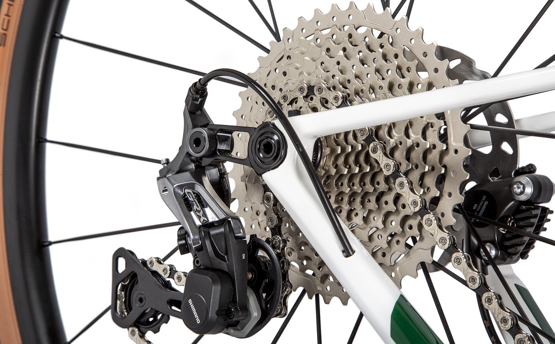 O pohon se stará sada Shimano GRX 1x11. Pohodlí zaručují kromě karbonové vidlice, také lehká zapletená kola DT Swiss, nebo karbonová sedlovka se sedlem Selle Royal Flex.