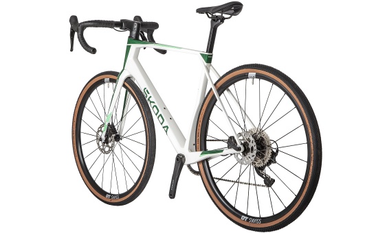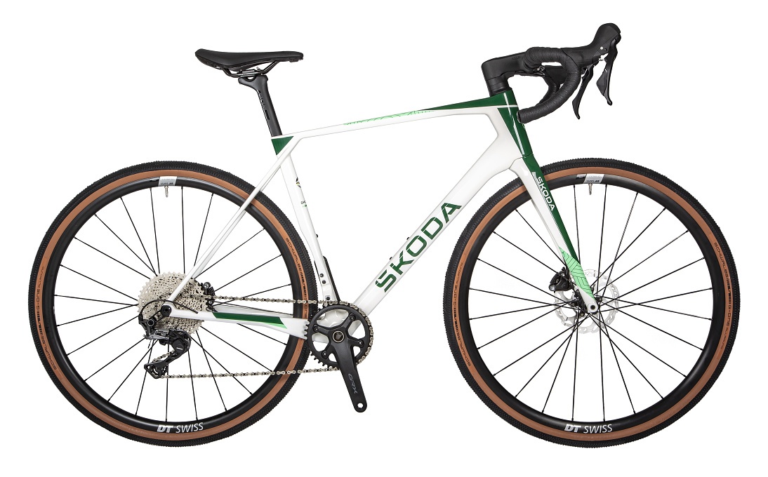 Škoda Gravel s karbonovým rámem X-ROAD s ochrannými prvky spodní rámové trubky a řetězové vzpěry je vyladěný pro maximální požitek z jízdy na šotolině i lehčím terénu.