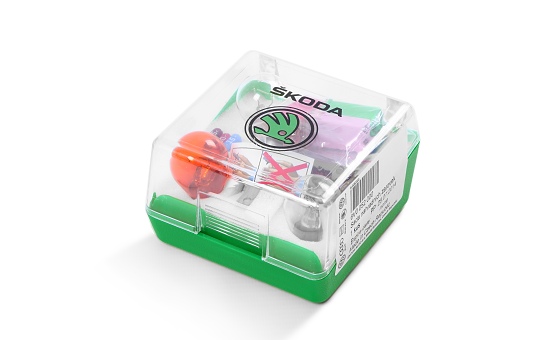 Známé pravidlo bezpečnosti silničního provozu „Vidět a být viděn“ platí v současné hustotě provozu dvojnásob. Vnější osvětlení vozu musí být vždy funkční, vůz musí být na dopravní komunikaci viděn za jakýchkoliv klimatických podmínek. Případnou závadu je nutné, pokud je to alespoň trochu možné, opravit na místě. Z toho důvodu patří sada náhradních žárovek do povinné výbavy vozu. ŠKODA Originální příslušenství nabízí ke každému typu vozu v závislosti na jeho výbavě, sadu náhradních žárovek nutných k zajištění vnějšího osvětlení vozu. Obsah sady je shodný se žárovkami, jež se do vozů montují v sériové výrobě. Žárovky jsou spolu s pojistkami přehledně uloženy v uzavíratelné plastové krabičce s průhledným víčkem, která se vkládá do příslušného místa v boxu na nářadí v zavazadlovém prostoru vozu. Pokud v boxu na nářadí již není místo, uložte krabičku se žárovkami do síťového programu. Při výměně žárovky / pojistky, je nutné dbát na správné ustavení žárovky do objímky žárovky příslušného světlometu, popř. zadní skupinové svítilny / pojistky pak do příslušného místa v pojistkovém panelu.