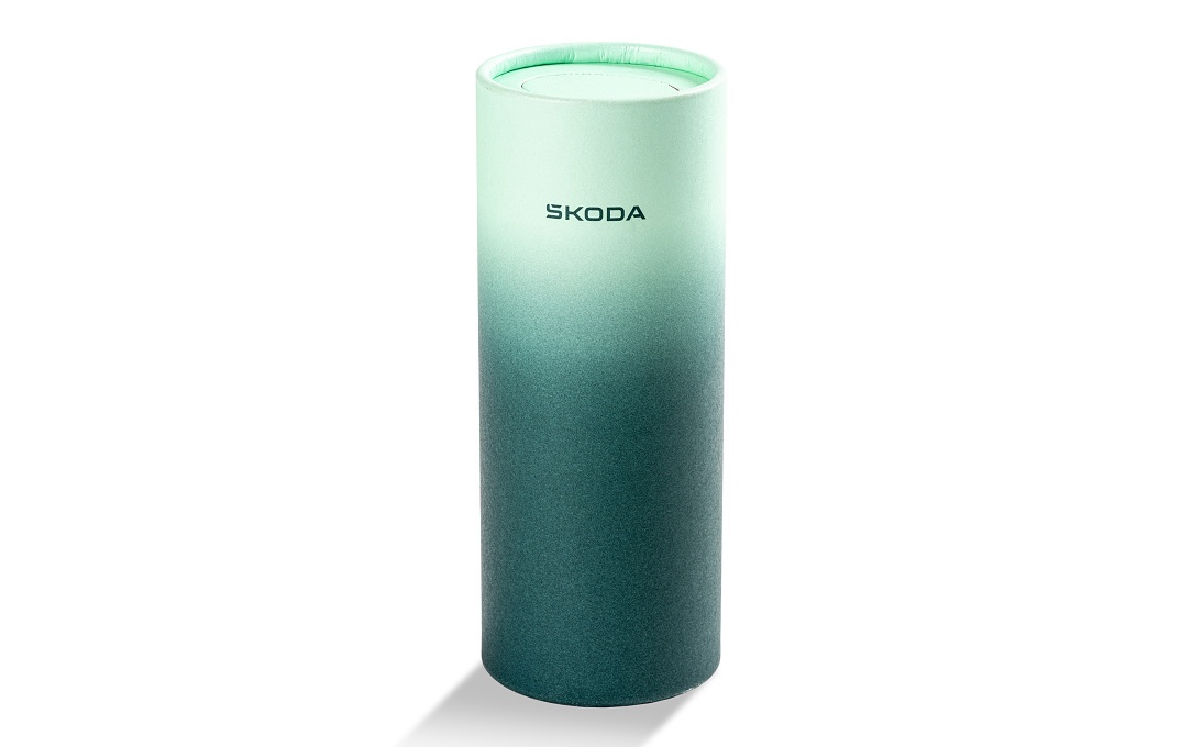 The ombré design in Electric and Emerald green is complemented by a subtle Škoda logo.