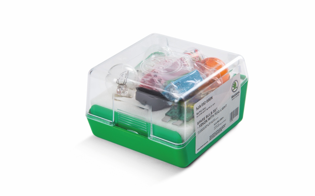 A well-known rule of the road safety says that it’s necessary to “see and be seen”. This means that outer lighting of your car has to be always 100% functional, and possible faults should be fixed with replacing the malfunctioning bulb for a spare one as soon as possible. This is also mentioned in road safety rules of many countries, which put a spare set of bulbs on the list of mandatory equipment for any car. With buying a set of spare bulbs from Škoda Genuine Accessories, you will get all the spare bulbs necessary to provide your car’s outer lighting, including the fuses. The bulbs are identical with those fitted to the car on the production line. The light bulbs are organised in a plastic box with a transparent top, which is inserted in its dedicated spot in the tool box under the car trunk floor. When changing the bulb, you need to wait for a few minutes to have it cool down and then replace it. It is necessary to make sure the bulb is fitted correctly.